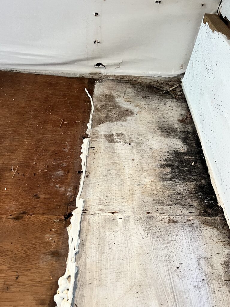 I was wrong. It was all moldy. Black mold. Clearly I didn’t know this until a few days later when our new bed came in from amazon and I found the new sheet of plywood that was placed over the rotten wood underneath the bed.